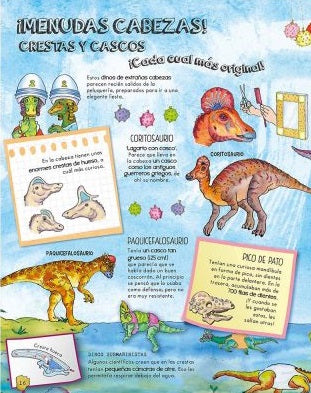 En este divertido libro, vas a poder descubrir cuándo vivieron, cómo eran estas criaturas y la Tierra en la que habitaban, qué comían, por qué se extinguieron, qué tipos de dinosaurios había, qué es un paleontólogo… ¡y muchas cosas más! ¿Te atreves a explorar sus páginas?
